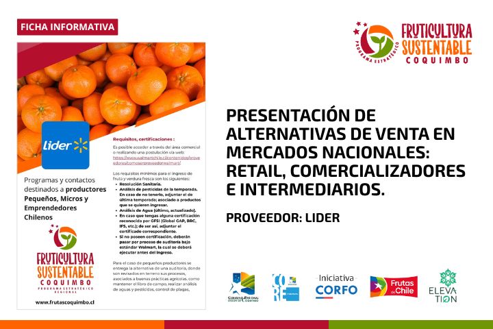 Presentación de alternativas de venta en mercados nacionales: retail, comercializadores e intermediarios. Proveedor: Líder