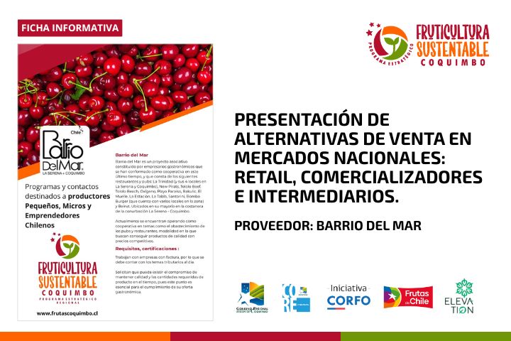 Presentación de alternativas de venta en mercados nacionales: retail, comercializadores e intermediarios. Proveedor: Barrio del Mar