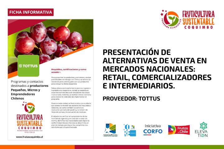 Presentación de alternativas de venta en mercados nacionales: retail, comercializadores e intermediarios. Proveedor: Tottus