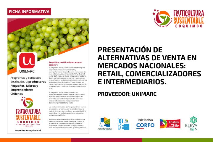 Presentación de alternativas de venta en mercados nacionales: retail, comercializadores e intermediarios. Proveedor: Unimarc